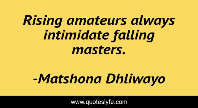 "Matshona Dhliwayo Quotes." Quoteslyfe.com, 2025. Mon. 08 Dec. 2025. <https://www.quoteslyfe.com/quote/Rising-amateurs-always-intimidate-falling-masters-109036>.
