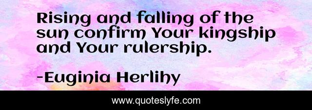 This page presents the quote "Rising and falling of the sun confirm Your kingship and Your rulership.". Author of this quote is Euginia Herlihy. .