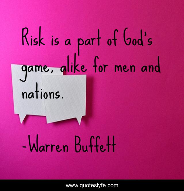 This page presents the quote "Risk is a part of God's game, alike for men and nations.". Author of this quote is Warren Buffett. This quote is about game, men, risk,.