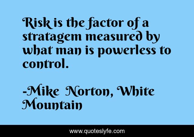 "Mike Norton, White Mountain Quotes." Quoteslyfe.com, 2025. Fri. 05 Dec. 2025. <https://www.quoteslyfe.com/quote/Risk-is-the-factor-of-a-stratagem-52521>.