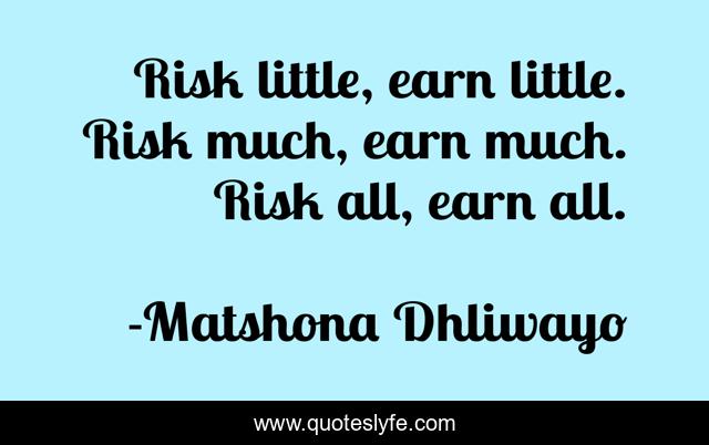 "Matshona Dhliwayo Quotes." Quoteslyfe.com, 2025. Sat. 06 Dec. 2025. <https://www.quoteslyfe.com/quote/Risk-little-earn-little-Risk-much-earn-108883>.