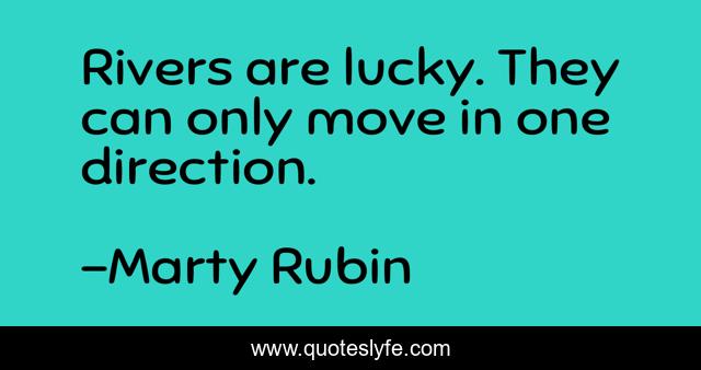 This page presents the quote "Rivers are lucky. They can only move in one direction.". Author of this quote is Marty Rubin. This quote is about possibilities, choices, rivers, luck,.