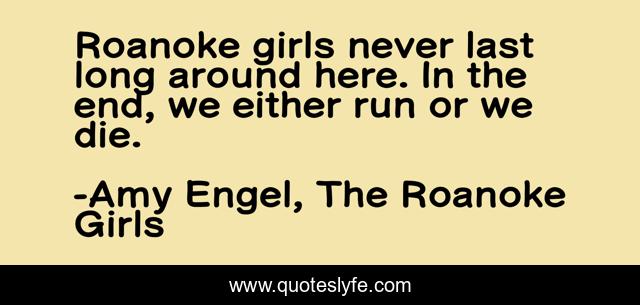 This page presents the quote "Roanoke girls never last long around here. In the end, we either run or we die.". Author of this quote is Amy Engel, The Roanoke Girls. This quote is about die, run,.