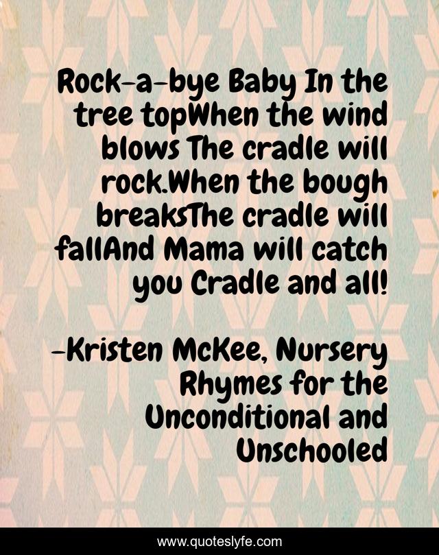 "Kristen McKee, Nursery Rhymes for the Unconditional and Unschooled Quotes." Quoteslyfe.com, 2025. Sat. 06 Dec. 2025. <https://www.quoteslyfe.com/quote/Rock-a-bye-Baby-In-the-tree-136353>.