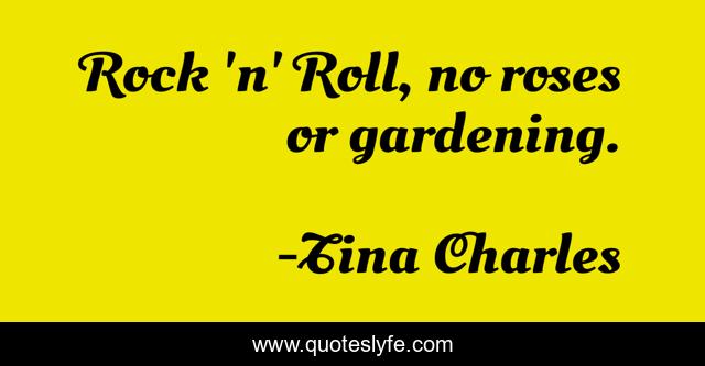 This page presents the quote "Rock 'n' Roll, no roses or gardening.". Author of this quote is Tina Charles. This quote is about roses, roll, rock,.