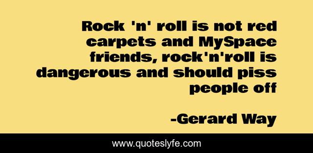 This page presents the quote "Rock 'n' roll is not red carpets and MySpace friends, rock'n'roll is dangerous and should piss people off". Author of this quote is Gerard Way. This quote is about humor, life, music,.