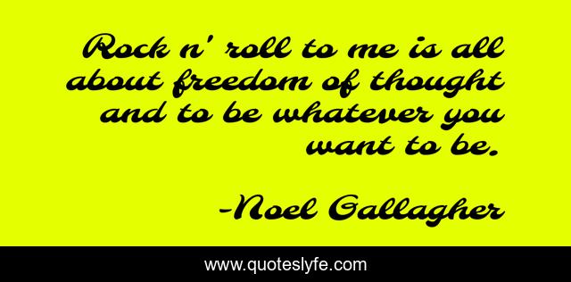 This page presents the quote "Rock n' roll to me is all about freedom of thought and to be whatever you want to be.". Author of this quote is Noel Gallagher. This quote is about thought, me,.