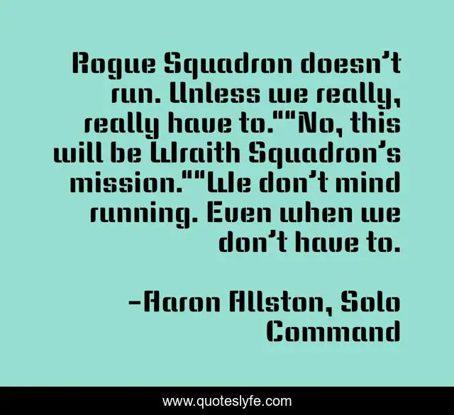 "Aaron Allston, Solo Command Quotes." Quoteslyfe.com, 2025. Fri. 05 Dec. 2025. <https://www.quoteslyfe.com/quote/Rogue-Squadron-doesn-t-run-Unless-we-55522>.