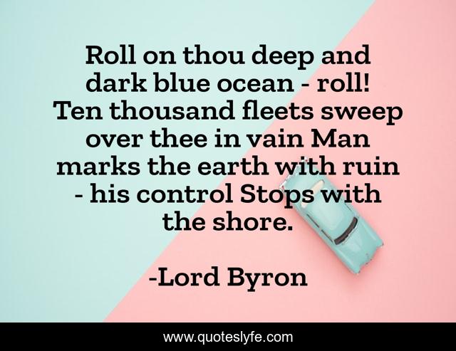 This page presents the quote "Roll on thou deep and dark blue ocean - roll! Ten thousand fleets sweep over thee in vain Man marks the earth with ruin - his control Stops with the shore.". Author of this quote is Lord Byron. .