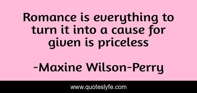 This page presents the quote "Romance is everything to turn it into a cause for given is priceless". Author of this quote is Maxine Wilson-Perry. This quote is about drama, mystery, romance, dog, paranormal,.