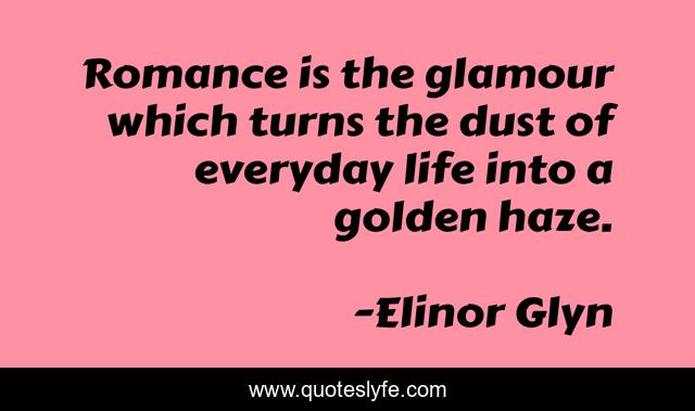 This page presents the quote "Romance is the glamour which turns the dust of everyday life into a golden haze.". Author of this quote is Elinor Glyn. This quote is about romance, love, affection, inspiration,.