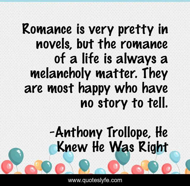 This page presents the quote "Romance is very pretty in novels, but the romance of a life is always a melancholy matter. They are most happy who have no story to tell.". Author of this quote is Anthony Trollope, He Knew He Was Right. This quote is about romance, life,.