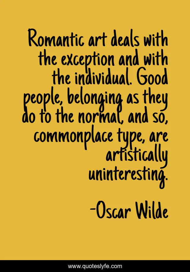 "Oscar Wilde Quotes." Quoteslyfe.com, 2025. Mon. 08 Dec. 2025. <https://www.quoteslyfe.com/quote/Romantic-art-deals-with-the-exception-and-324595>.