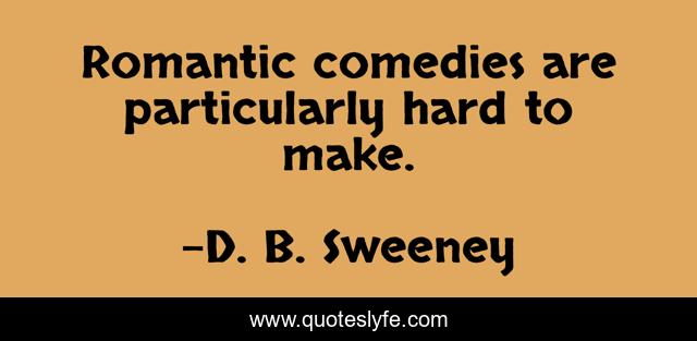 This page presents the quote "Romantic comedies are particularly hard to make.". Author of this quote is D. B. Sweeney. This quote is about hard, romantic comedies,.