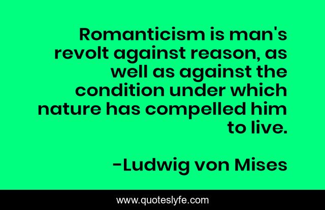 This page presents the quote "Romanticism is man's revolt against reason, as well as against the condition under which nature has compelled him to live.". Author of this quote is Ludwig von Mises. This quote is about romanticism, reason, socialism, romantic, economics,.