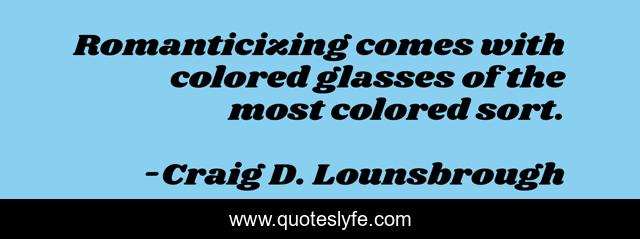 "Craig D. Lounsbrough Quotes." Quoteslyfe.com, 2025. Mon. 08 Dec. 2025. <https://www.quoteslyfe.com/quote/Romanticizing-comes-with-colored-glasses-of-the-181167>.
