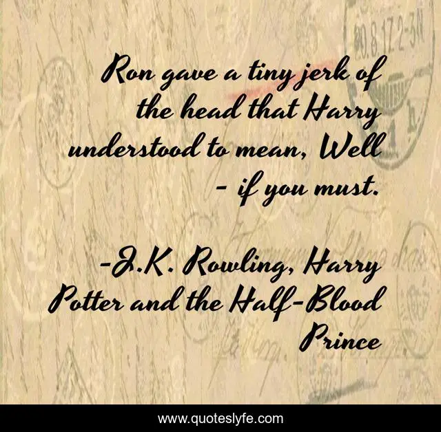 "J.K. Rowling, Harry Potter and the Half-Blood Prince Quotes." Quoteslyfe.com, 2025. Mon. 08 Dec. 2025. <https://www.quoteslyfe.com/quote/Ron-gave-a-tiny-jerk-of-the-248978>.