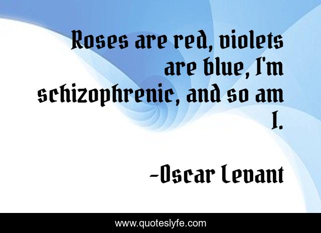 This page presents the quote "Roses are red, violets are blue, I'm schizophrenic, and so am I.". Author of this quote is Oscar Levant. This quote is about blue, roses, red,.
