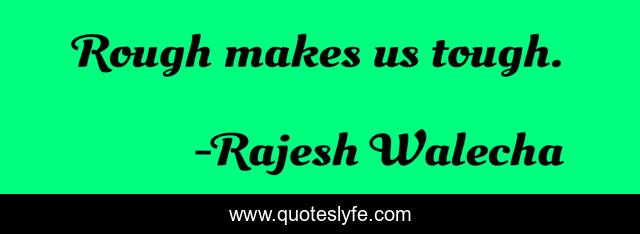 This page presents the quote "Rough makes us tough.". Author of this quote is Rajesh Walecha. This quote is about enthusiasm, inspirational,.