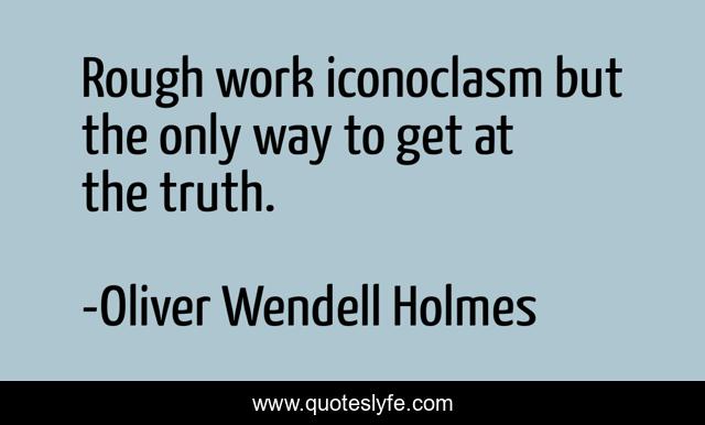 This page presents the quote "Rough work iconoclasm but the only way to get at the truth.". Author of this quote is Oliver Wendell Holmes. .