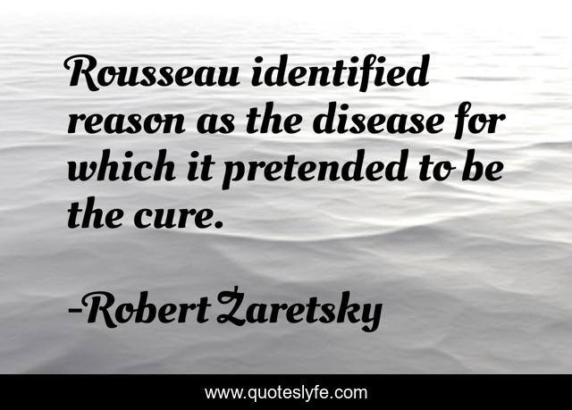 This page presents the quote "Rousseau identified reason as the disease for which it pretended to be the cure.". Author of this quote is Robert Zaretsky. This quote is about reason, philosophy, jeanjacquesrousseau,.