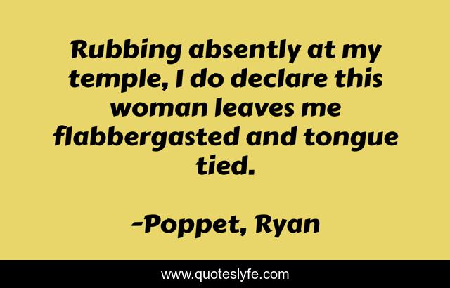 This page presents the quote "Rubbing absently at my temple, I do declare this woman leaves me flabbergasted and tongue tied.". Author of this quote is Poppet, Ryan. This quote is about paranormal-romance, vampire-romance,.