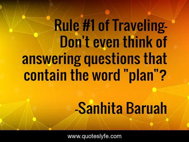 "Sanhita Baruah Quotes." Quoteslyfe.com, 2025. Fri. 05 Dec. 2025. <https://www.quoteslyfe.com/quote/Rule-1-of-Traveling-Don-t-even-51870>.