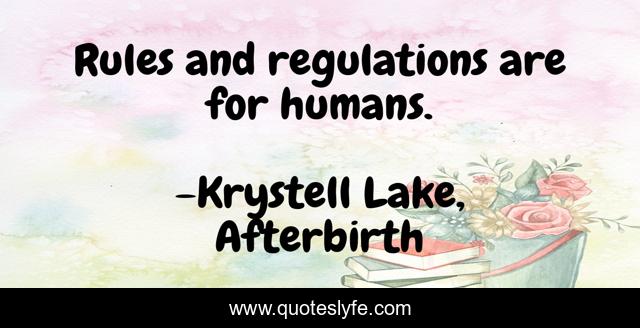 "Krystell Lake, Afterbirth Quotes." Quoteslyfe.com, 2025. Fri. 05 Dec. 2025. <https://www.quoteslyfe.com/quote/Rules-and-regulations-are-for-humans-190292>.