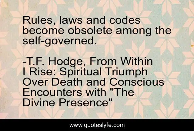 "T.F. Hodge, From Within I Rise: Spiritual Triumph Over Death and Conscious Encounters with "The Divine Presence" Quotes." Quoteslyfe.com, 2025. Mon. 08 Dec. 2025. <https://www.quoteslyfe.com/quote/Rules-laws-and-codes-become-obsolete-among-211876>.