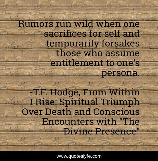 "T.F. Hodge, From Within I Rise: Spiritual Triumph Over Death and Conscious Encounters with "The Divine Presence" Quotes." Quoteslyfe.com, 2025. Sun. 07 Dec. 2025. <https://www.quoteslyfe.com/quote/Rumors-run-wild-when-one-sacrifices-for-141952>.