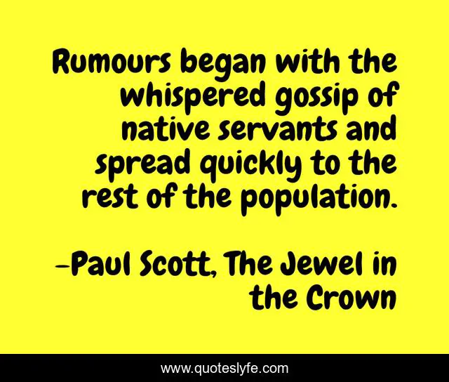 "Paul Scott, The Jewel in the Crown Quotes." Quoteslyfe.com, 2025. Sat. 06 Dec. 2025. <https://www.quoteslyfe.com/quote/Rumours-began-with-the-whispered-gossip-of-281228>.