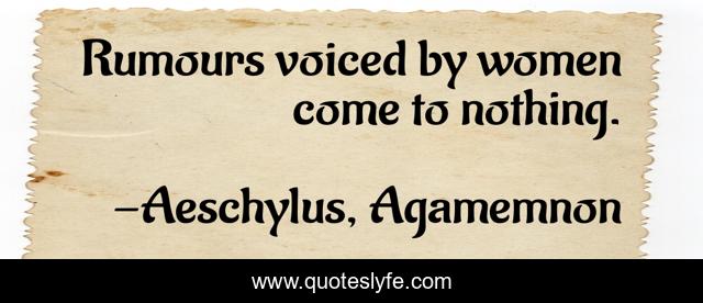 "Aeschylus, Agamemnon Quotes." Quoteslyfe.com, 2025. Mon. 08 Dec. 2025. <https://www.quoteslyfe.com/quote/Rumours-voiced-by-women-come-to-nothing-58743>.