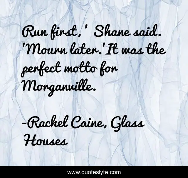 "Rachel Caine, Glass Houses Quotes." Quoteslyfe.com, 2025. Sun. 07 Dec. 2025. <https://www.quoteslyfe.com/quote/Run-first-Shane-said-Mourn-later-It-5783>.