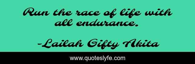 This page presents the quote "Run the race of life with all endurance.". Author of this quote is Lailah Gifty Akita. This quote is about endurance, determination, life,.