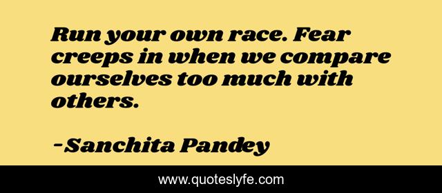This page presents the quote "Run your own race. Fear creeps in when we compare ourselves too much with others.". Author of this quote is Sanchita Pandey. This quote is about comparison, fear, happy-life, successful-living, life-lessons,.