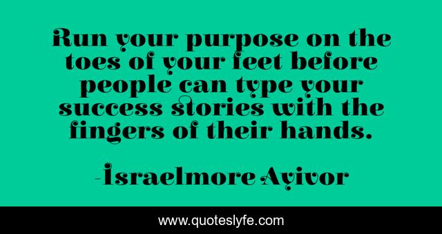 "Israelmore Ayivor Quotes." Quoteslyfe.com, 2025. Fri. 05 Dec. 2025. <https://www.quoteslyfe.com/quote/Run-your-purpose-on-the-toes-of-129912>.