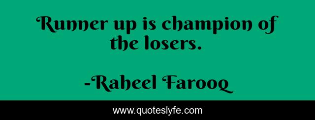 "Raheel Farooq Quotes." Quoteslyfe.com, 2025. Mon. 08 Dec. 2025. <https://www.quoteslyfe.com/quote/Runner-up-is-champion-of-the-losers-92184>.
