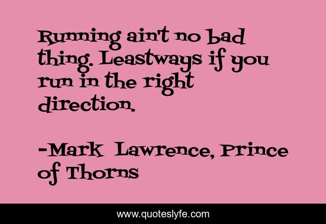 "Mark Lawrence, Prince of Thorns Quotes." Quoteslyfe.com, 2025. Sat. 06 Dec. 2025. <https://www.quoteslyfe.com/quote/Running-ain-t-no-bad-thing-Leastways-6953>.