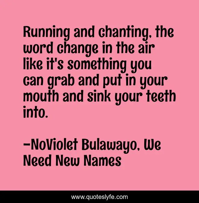 "NoViolet Bulawayo, We Need New Names Quotes." Quoteslyfe.com, 2025. Sat. 13 Dec. 2025. <https://www.quoteslyfe.com/quote/Running-and-chanting-the-word-change-in-59785>.