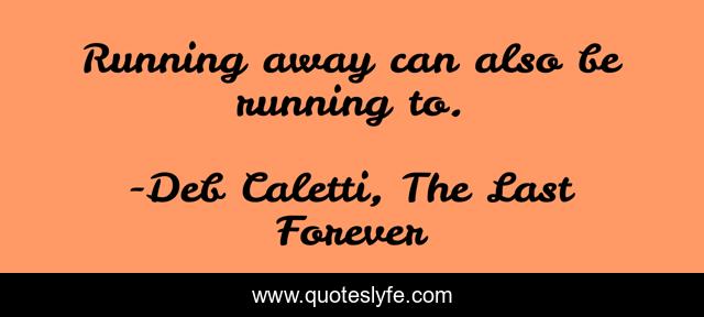 This page presents the quote "Running away can also be running to.". Author of this quote is Deb Caletti, The Last Forever. This quote is about enthusiasm, depression, inspirational,.