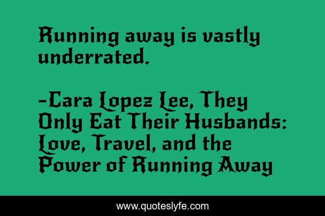 "Cara Lopez Lee, They Only Eat Their Husbands: Love, Travel, and the Power of Running Away Quotes." Quoteslyfe.com, 2025. Fri. 05 Dec. 2025. <https://www.quoteslyfe.com/quote/Running-away-is-vastly-underrated-204393>.