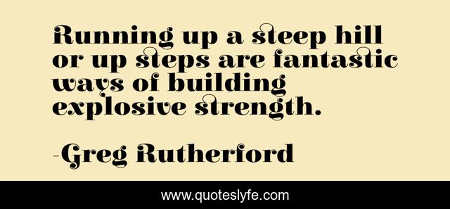 This page presents the quote "Running up a steep hill or up steps are fantastic ways of building explosive strength.". Author of this quote is Greg Rutherford. This quote is about building, hill, up,.