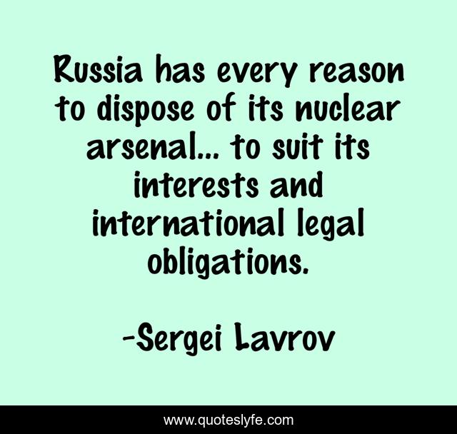 This page presents the quote "Russia has every reason to dispose of its nuclear arsenal... to suit its interests and international legal obligations.". Author of this quote is Sergei Lavrov. This quote is about reason, russia, suit,.