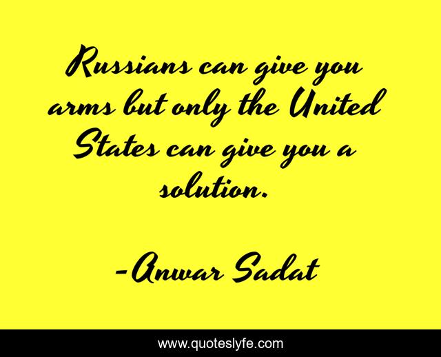 This page presents the quote "Russians can give you arms but only the United States can give you a solution.". Author of this quote is Anwar Sadat. This quote is about solution, give,.