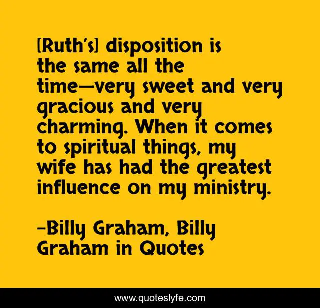 "Billy Graham, Billy Graham in Quotes Quotes." Quoteslyfe.com, 2025. Sat. 06 Dec. 2025. <https://www.quoteslyfe.com/quote/Ruth-s-disposition-is-the-same-all-77195>.