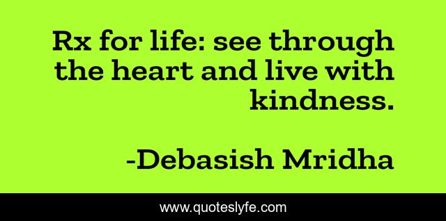 This page presents the quote "Rx for life: see through the heart and live with kindness.". Author of this quote is Debasish Mridha. This quote is about heart, life, education, love, knowledge, inspirational, intelligence, philosophy, wisdom,.