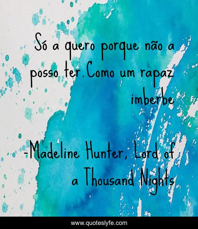 This page presents the quote "Só a quero porque não a posso ter.Como um rapaz imberbe". Author of this quote is Madeline Hunter, Lord of a Thousand Nights. This quote is about quotes, ian, reyna,.