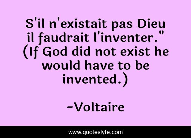 "Voltaire Quotes." Quoteslyfe.com, 2025. Sat. 06 Dec. 2025. <https://www.quoteslyfe.com/quote/S-il-n-existait-pas-Dieu-il-11358>.