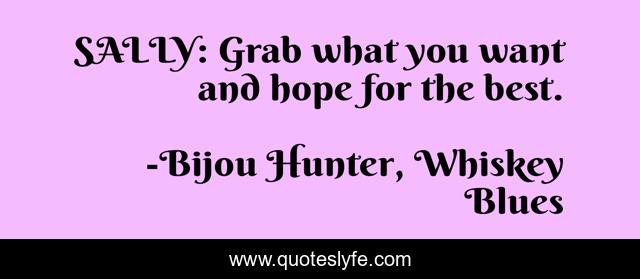 This page presents the quote "SALLY: Grab what you want and hope for the best.". Author of this quote is Bijou Hunter, Whiskey Blues. This quote is about erotic-romance, hope, mc-romance,.
