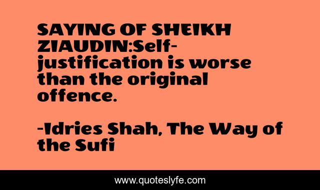 This page presents the quote "SAYING OF SHEIKH ZIAUDIN:Self-justification is worse than the original offence.". Author of this quote is Idries Shah, The Way of the Sufi. This quote is about sufism, sufis, ziaudin, wisdom,.